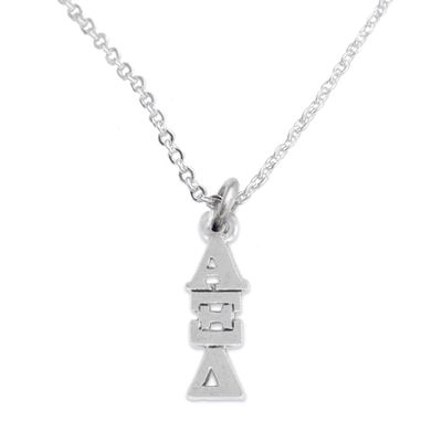Lead, Nickel & Cadmium Free! Bracelet Suspends Detailed Silver Tone Greek Letter Alpha Xi Delta Sorority Mini-Charm. Comes On A Lobster Clasp Chain Necklace.