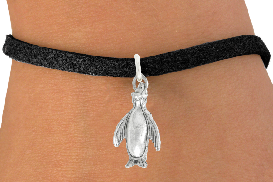 Exclusively Ours! Lead & Nickel Free "Penguin" Charm Comes On A Bracelet Of Your Choice: Lobster Clasp Chain, Toggle Chain, Brown Suede Leatherette, Or Black Suede Leatherette.