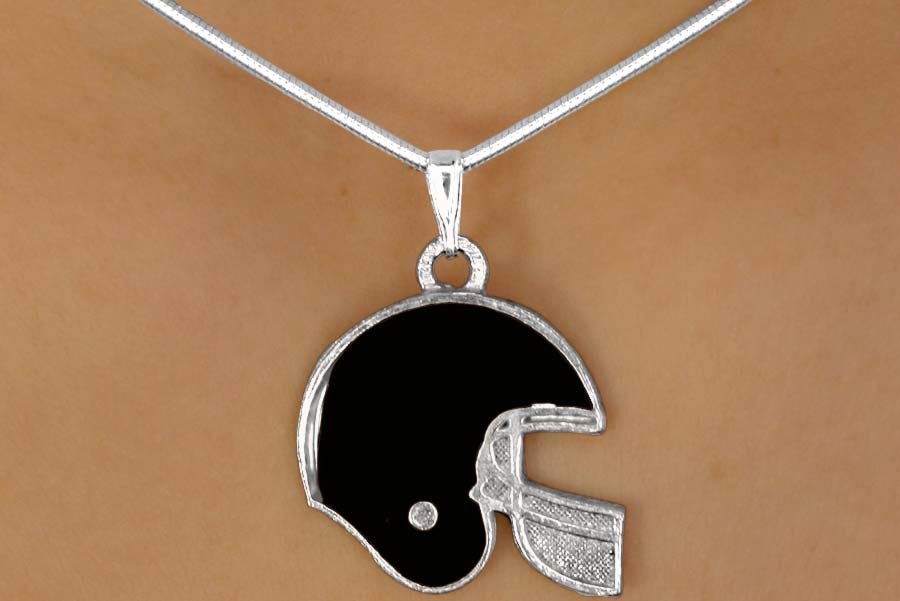 <bR>                 LEAD & NICKEL FREE!!<Br>W10922N - STERLING SILVER PLATED<Br>BLACK FOOTBALL HELMET NECKLACE<Br>                      AS LOW AS $2.55
