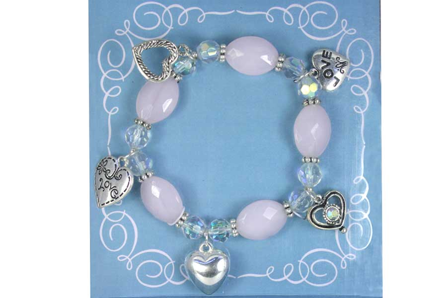 <Br>                BEAUTIFULLY BOXED!!!<BR>                  LEAD & NICKEL FREE!!<Br>    W11251B - "LOVE" POEM CARD &<BR>  IRIDESCENT BEADED HEART CHARM<BR>STRETCH BRACELET AS LOW AS $5.90