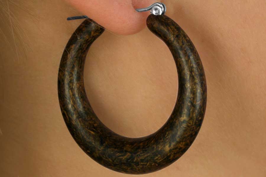 Exclusively Ours! Lead & Nickel Free Lobster Clasp Necklace Displays Uniquely Shaped Wooden Pieces, A Gray Marble Color Swirl Bead, & A Textured Metal Piece. Necklace Includes Matching Bridge-Wire Earrings.