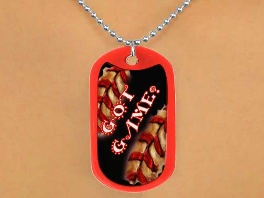 <Br>              LEAD & NICKEL FREE!!<Br>     W12502N - RED "GOT GAME?"<Br>DOG TAG & BALL CHAIN NECKLACE<Br>                  AS LOW AS $3.45
