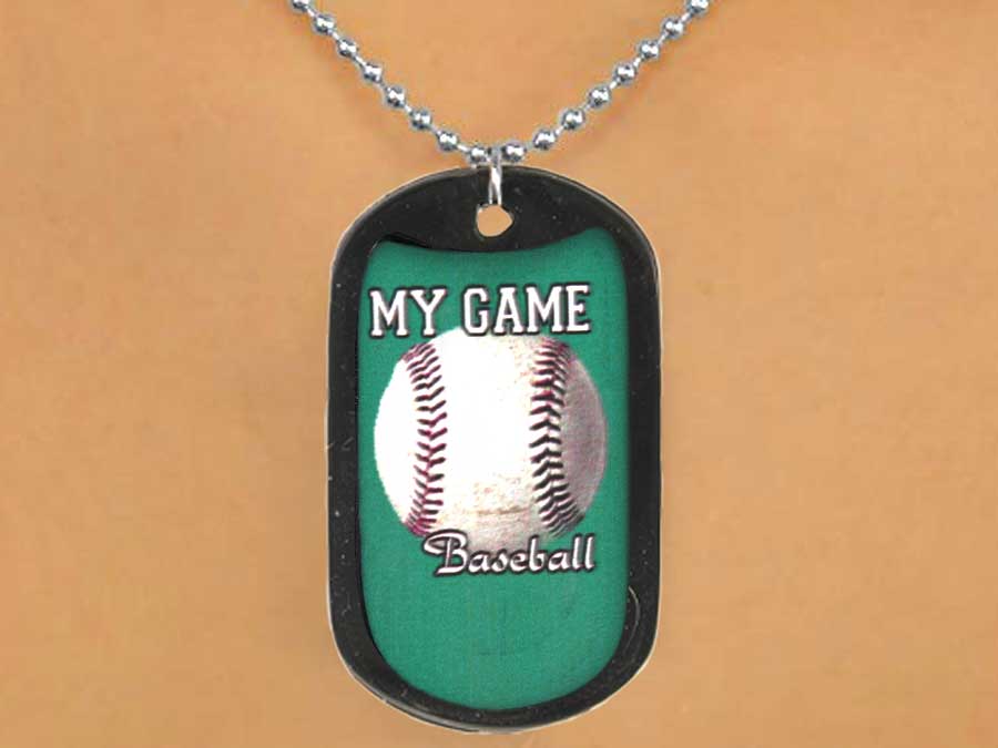 <Br>              LEAD & NICKEL FREE!!<Br>    W12503N - BLACK "MY GAME"<Br>DOG TAG & BALL CHAIN NECKLACE<Br>                  AS LOW AS $3.45