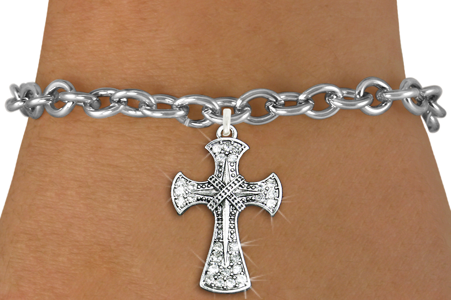Exclusively Ours! Lead, Nickel & Cadmium Free!! Silver Tone Genuine Austrian Crystal Covered "Bethlehem Cross" Charm Comes On A Bracelet Of Your Choice: Toggle Chain, Link Chain Or Suede Leatherette With Lobster Clasps.
