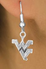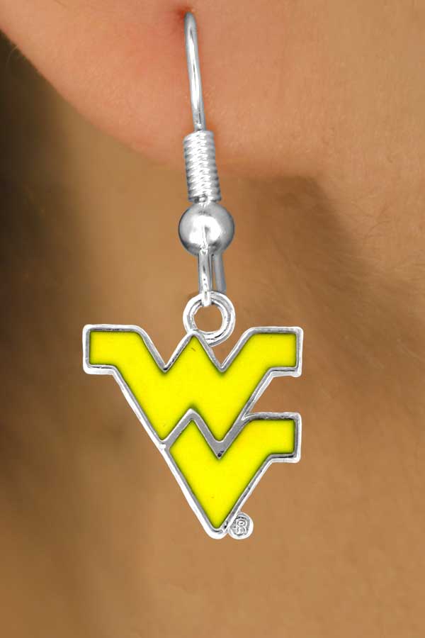Licensed College Jewelry!! Lead & Nickel Free Sterling Silver Plated Fishhook Wire Earrings Suspend Yellow West Virginia University Mountaineers Logos.