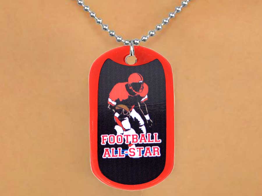 <Br>             LEAD & NICKEL FREE!!<Br>W12981N - "FOOTBALL ALL-STAR"<Br>      RED DOG TAG & BALL CHAIN<Br>      NECKLACE AS LOW AS $3.45