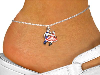 Exclusively Ours! Lead & Nickel Free!! Very Detailed, Hand Painted, Square Dancers Charm On A Lobster Clasp Anklet.
