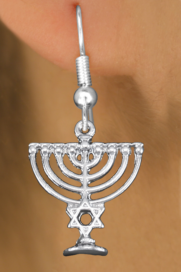 Exclusively Ours! Cadmium, Lead & Nickel Free!! Detailed Silver Tone Menorah Charm Comes On An Earring Style Of Your Choice: Surgical Steel Post Or Surgical Steel Fishhook.