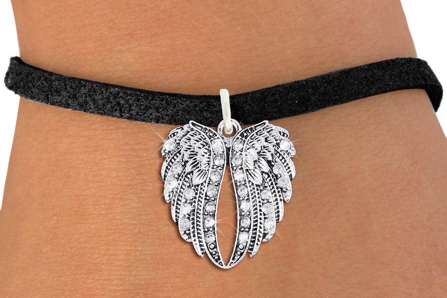 Exclusively Ours! Lead, Nickel & Cadmium Free!! Silver Tone Genuine Austrian Crystal Covered Angel Wings Charm Comes On A Bracelet Of Your Choice: Chain Or Suede Leatherette. Both Styles Have A Lobster Clasp.