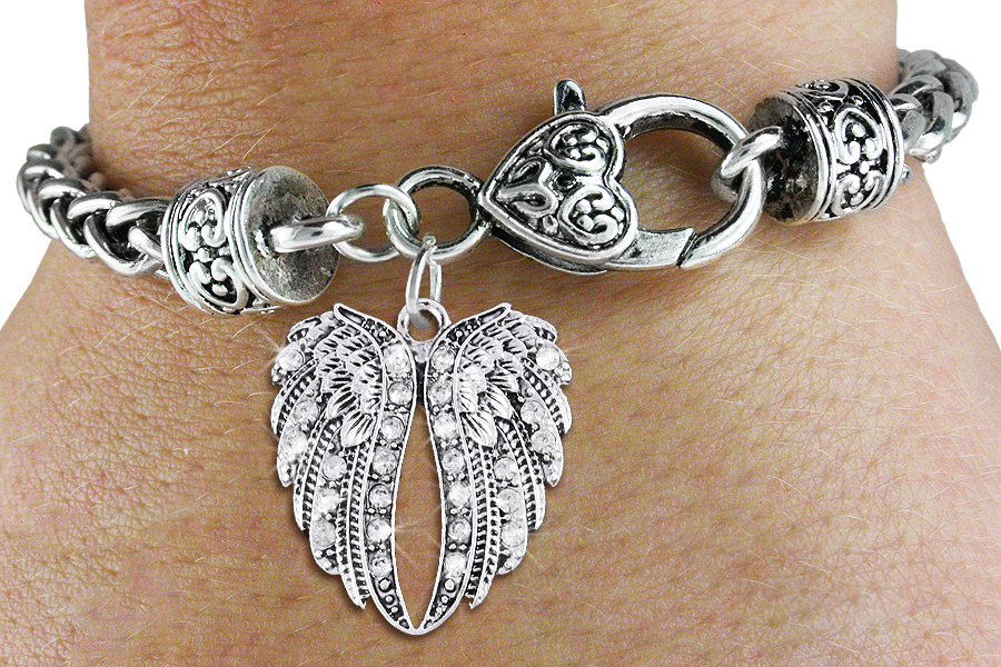 <bR>                   EXCLUSIVELY OURS!!<BR>             AN ALLAN ROBIN DESIGN!!<BR>                 LEAD & NICKEL FREE!! <BR>W1342SB - AUSTRIAN CRYSTAL ANGEL <BR>WINGS CHARM & HEART CLASP BRACELET <BR>         FROM $5.63 TO $12.50 ©2012