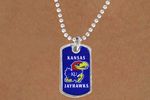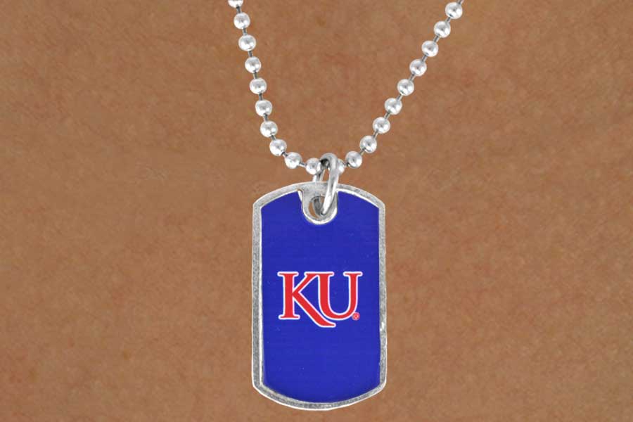 Licensed College Jewelry!! Lead & Nickel Free Sterling Silver Plated Ball Chain Necklace Suspends A Dog Tag With The University Of Kansas "Jayhawks" Mascot.