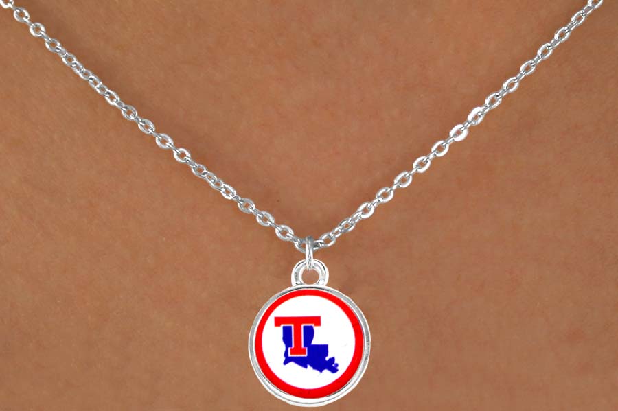 Licensed College Jewelry!! Lead & Nickel Free Sterling Silver Plated Lobster Clasp Necklace Suspends A Louisiana Tech University "Bulldogs" Logo.