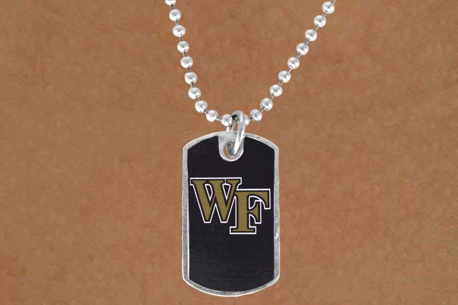 Licensed College Jewelry!! Lead & Nickel Free Sterling Silver Plated Ball Chain Necklace Suspends A Dog Tag With The Wake Forest University "Deacons" Logo.