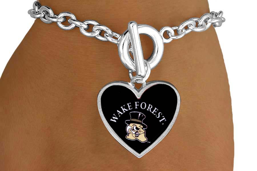 Licensed College Jewelry!! Lead & Nickel Free Sterling Silver Plated Bracelet Suspends A Heart With The Wake Forest University Logo.