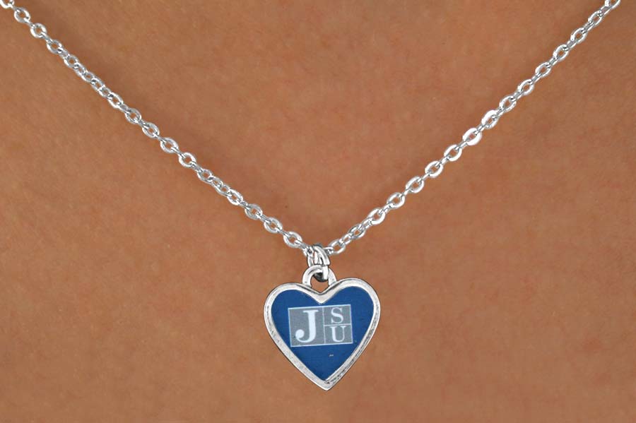 Licensed College Jewelry!! Lead & Nickel Free Sterling Silver Plated Lobster Clasp Necklace Suspends A Heart With The Jackson State University "Tigers" Logo.