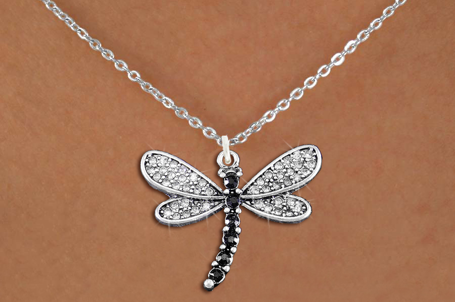 Exclusively Ours! Lead, Nickel & Cadmium Free!! Beautiful Silver Tone Dragonfly Charm Is Covered With Faceted Jet And Clear Crystals. Comes On A Necklace Style Of Your Choice: Ball Chain, Regular Chain, Black Suede Leatherette, or Toggle Chain. Show Your Patriotism For Our Country!