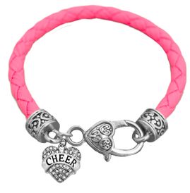 Exclusively Ours! Nickel, Lead, And Poisonous Cadmium Free, It Is What You Do Not See That Matters©. Genuine Pink Leather Bracelet With Genuine Crystal Cheer Charm. Bracelet Size is Approximately 7 3/4 Inches Long.
