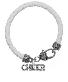 Exclusively Ours! Nickel, Lead, And Poisonous Cadmium Free, It Is What You Do Not See That Matters©. Genuine White Leather Bracelet With Genuine Crystal Cheer Charm. Bracelet Size is Approximately 7 3/4 + Inches Long.