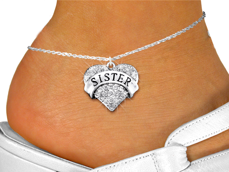 Exclusively Ours! Lead, Nickel & Cadmium Free!! Detailed Antiqued Silver Tone "SISTER" Heart Charm Is Covered In Faceted Clear Crystal And Comes On A Lobster Clasp Anklet.