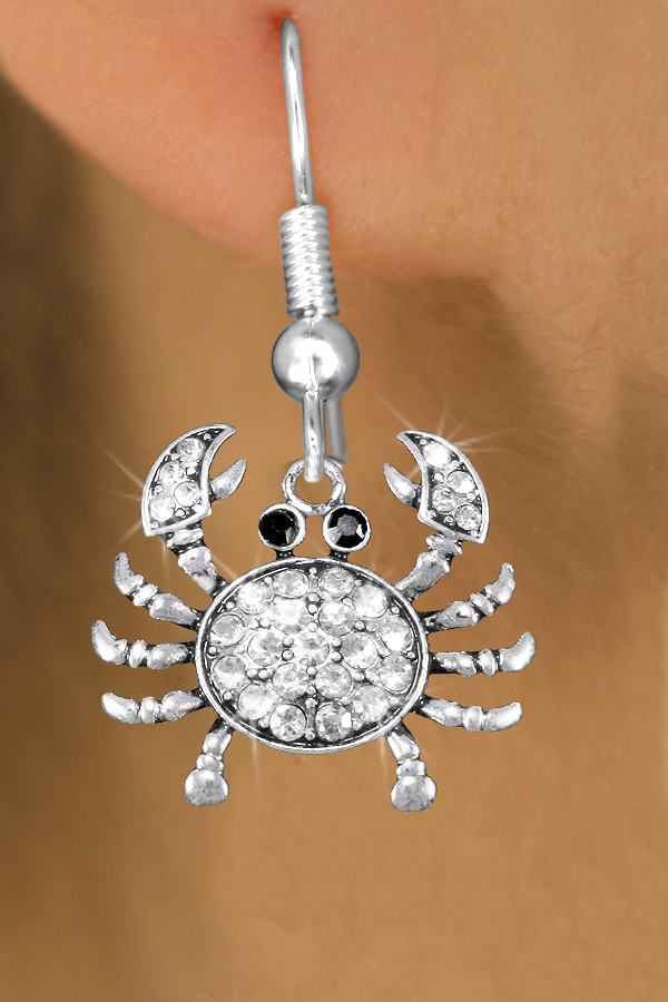 <bR>              EXCLUSIVELY OURS!! <Br>         AN ALLAN ROBIN DESIGN!! <BR>   LEAD, NICKEL & CADMIUM FREE!! <BR> W1421SE - SILVER TONE CRAB WITH JET <BR> AND CLEAR CRYSTALS CHARM EARRINGS <BR>      FROM $4.95 TO $10.00 ©2013