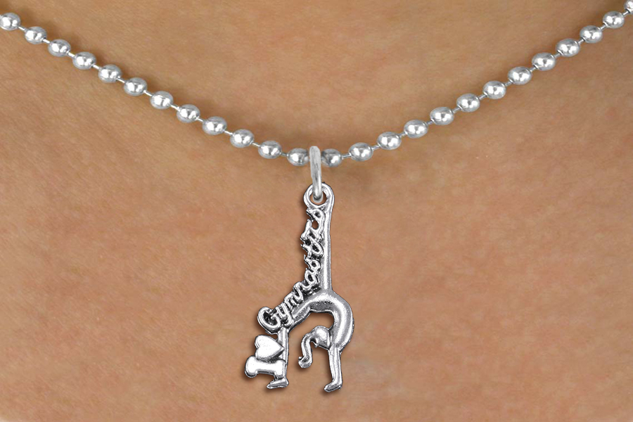 Exclusively Ours! Cadmium, Lead & Nickel Free! Silver Tone "I Love Gymnastics" With Gymnast Charm Comes On A Necklace Style Of Your Choice: Ball Chain, Regular Chain, Snake Chain, Or Black Suede Leatherette.
