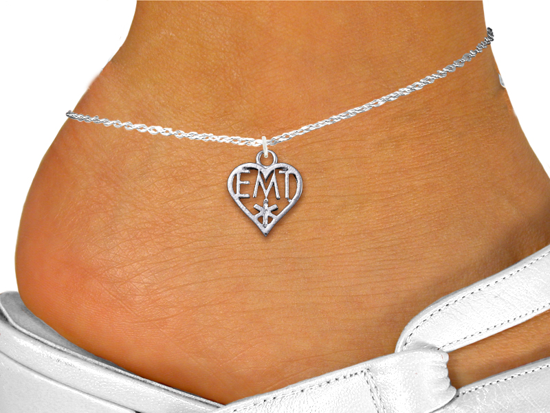 Exclusively Ours! Cadmium, Lead & Nickel Free! Detailed "EMT" Heart Charm Comes On A Lobster Clasp Anklet.