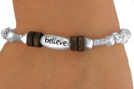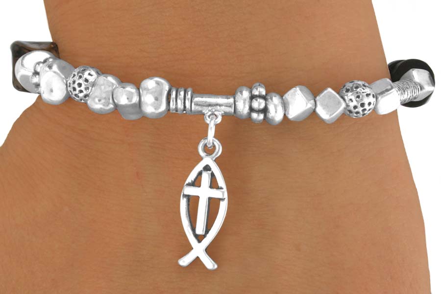 Lead & Nickel Free!! Silver Tone Stretch Bracelet Suspends A Christian Fish With A Cross And Says "Believe."