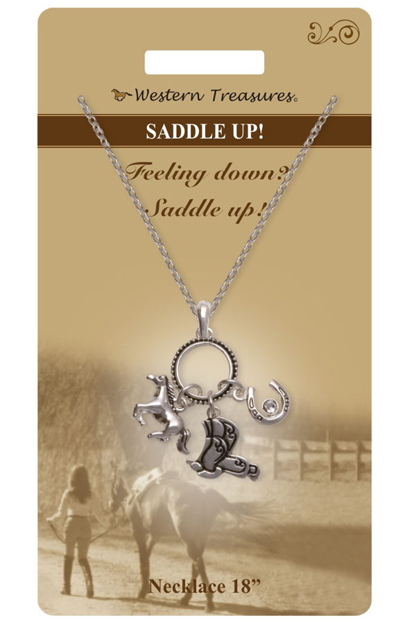 <Br>              LEAD & NICKEL FREE!!<Br>            WESTERN TREASURES!!<Br>  W15328N - "SADDLE UP" MULTI<Br>WESTERN CHARM NECKLACE WITH<Br>         GIFT CARD AND ENVELOPE<Br>         YOUR LOW PRICE IS $7.97
