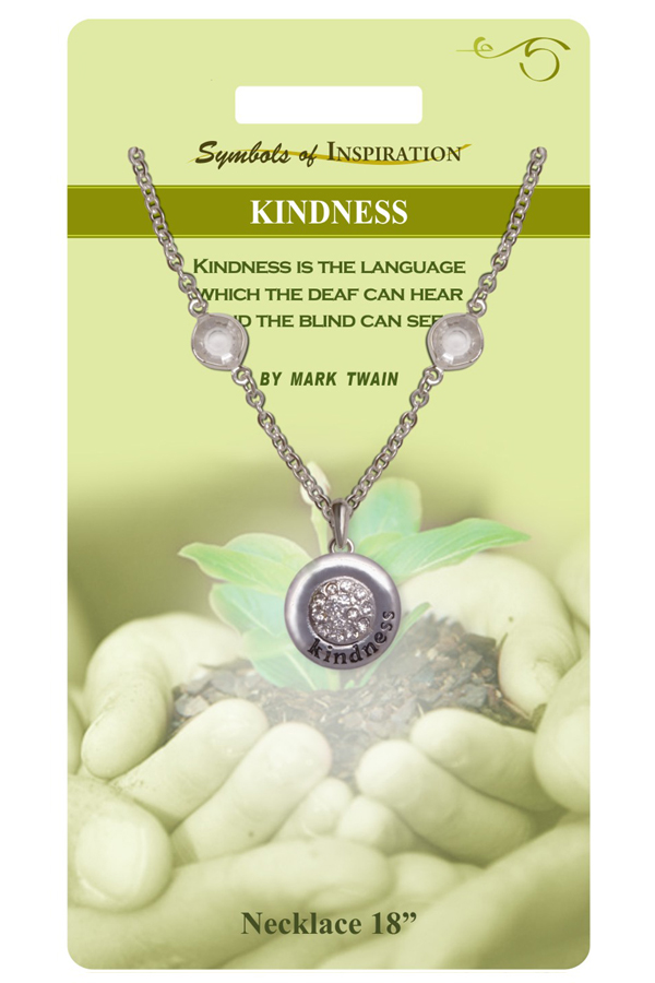 <Br>               LEAD & NICKEL FREE!!<Br>        SYMBOLS OF INSPIRATION!!<Br>W15452N - "KINDNESS" AUSTRIAN<br>          CRYSTAL AND SILVER TONE<Br>         NECKLACE WITH GIFT CARD<Br>   AND ENVELOPE AS LOW AS $7.97