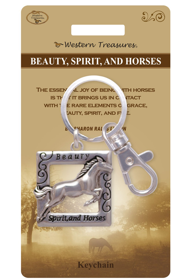 <Br>                LEAD & NICKEL FREE!!<Br>              WESTERN TREASURES!!<Br>W15588KC - "BEAUTY, SPIRIT AND <Br> HORSES" CHARM KEYCHAIN WITH<bR>          GIFT CARD AND ENVELOPE<Br>          YOUR LOW PRICE IS $6.47