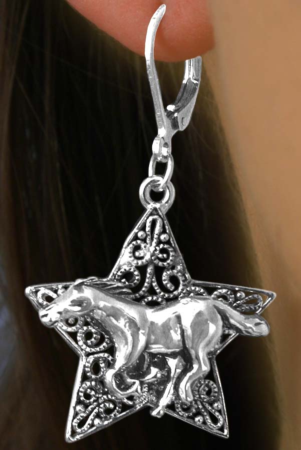 <Br>                 LEAD & NICKEL FREE!!<Br>                  EXCLUSIVELY OURS!!<Br>            AN ALLAN ROBIN DESIGN!!<Br>   W15714NE - SILVER TONE FILIGREE<Br>STAR & RUNNING HORSE NECKLACE &<Br>  EARRING SET FROM $8.44 TO $18.75