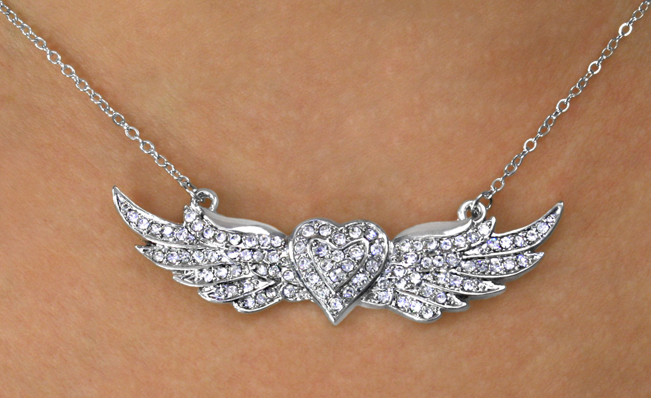 <Br>                LEAD & NICKEL FREE!!<Br>    W15824N - DAZZLING AUSTRIAN<Br>CRYSTAL ACCENTED "FLYING HEART"<Br>    NECKLACE FROM $7.31 TO $16.25
