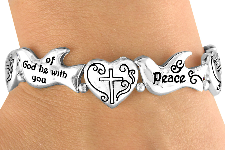<Br>                 LEAD & NICKEL FREE!!<Br>   W15861B - RELIGIOUS CHRISTIAN<Br>"PEACE OF GOD BE WITH YOU" DOVE<Br>     & HEART LINK MAGNETIC CLASP<Br>    BRACELET FROM $7.95 TO $15.00