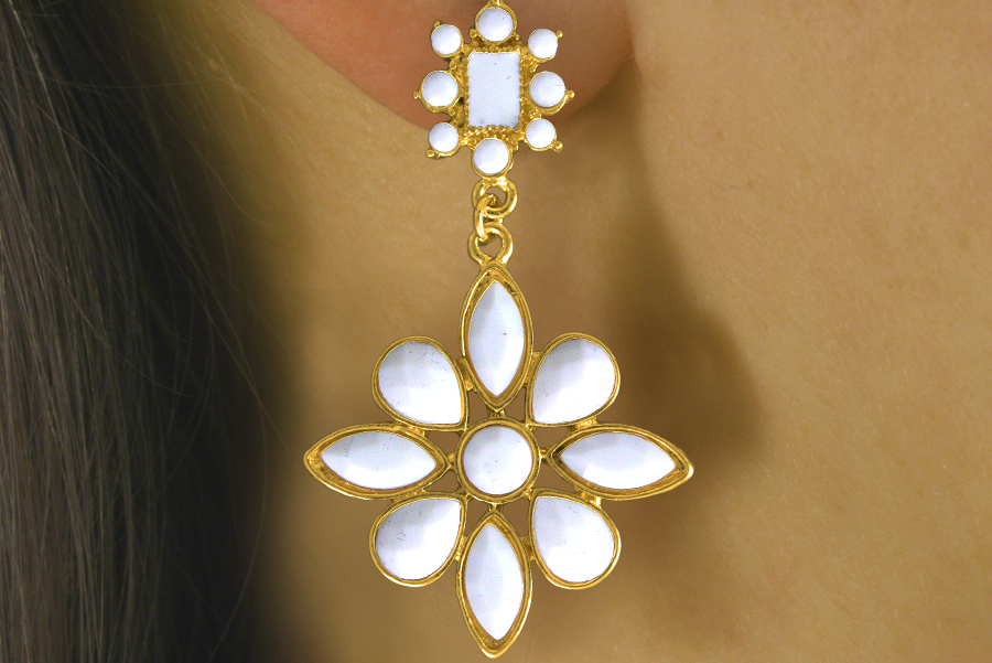 <Br>                  LEAD & NICKEL FREE!!<Br>     W16575EA - 2-STYLE GOLD TONE<Br>    TRIM FACETED WHITE FAUX STONE<Br>FLOWER DROP EARRING ASSORTMENT<Br>                 FROM $5.06 TO $10.13