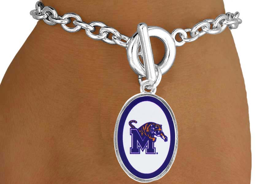 <Br>               LEAD & NICKEL FREE!!<Br>         STERLING SILVER PLATED!!<bR> W16660B - LICENSED UNIVERSITY<Br>      OF MEMPHIS "TIGERS" LOGO<BR>  OVAL BRACELET AS LOW AS $3.65