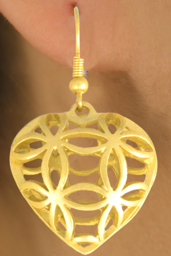 Lead & Nickel Free!! Matte Gold Finish Lobster Clasp Necklace Suspends Multiple Heart Charm Drops In Various Hollow-Core Patterns. Necklace Includes Matching Fishhook Wire Earrings.