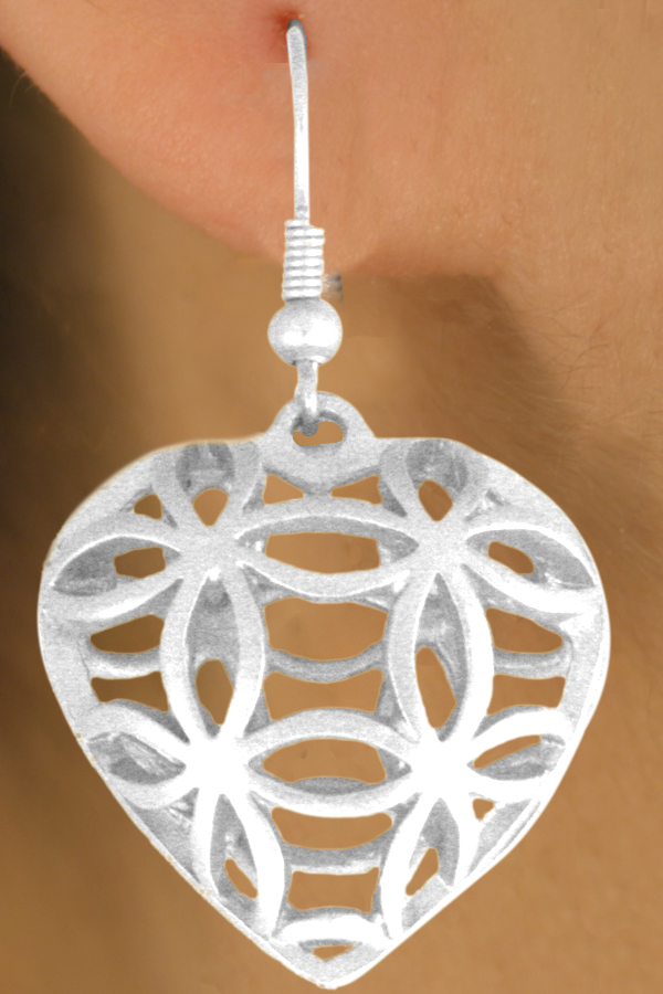 Lead & Nickel Free!! Matte Silver Tone Lobster Clasp Necklace Suspends Multiple Heart Charm Drops In Various Hollow-Core Patterns. Necklace Includes Matching Fishhook Wire Earrings.