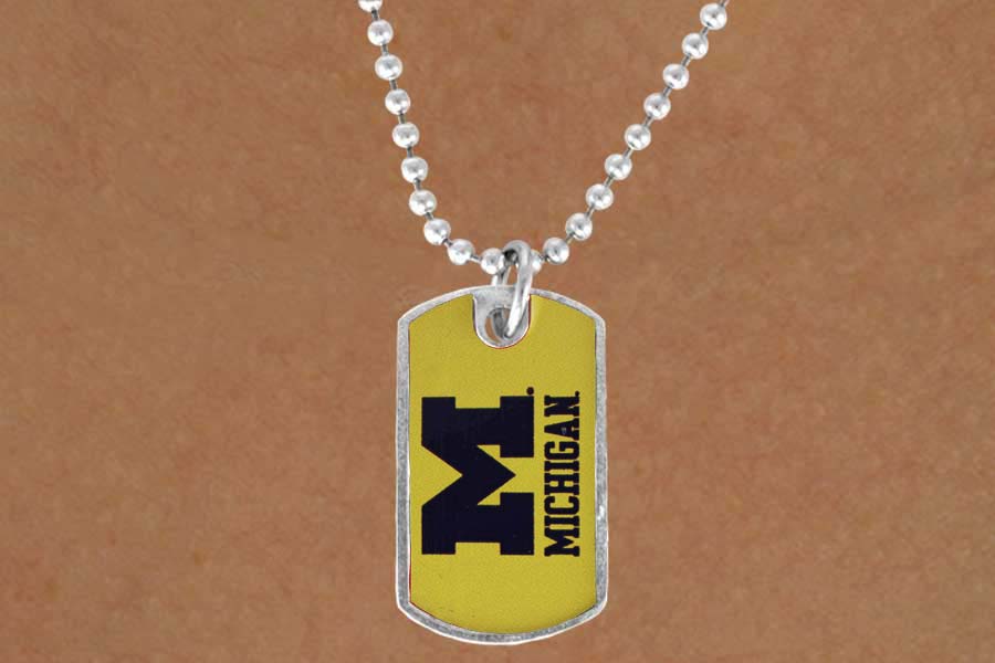 <Br>               LEAD & NICKEL FREE!!<Br>         STERLING SILVER PLATED!!<bR> W17092N - LICENSED UNIVERSITY<Br>OF MICHIGAN "WOLVERINES" DOG<Br>        TAG LOGO NECKLACE FROM<Br>                     $3.94 TO $8.75