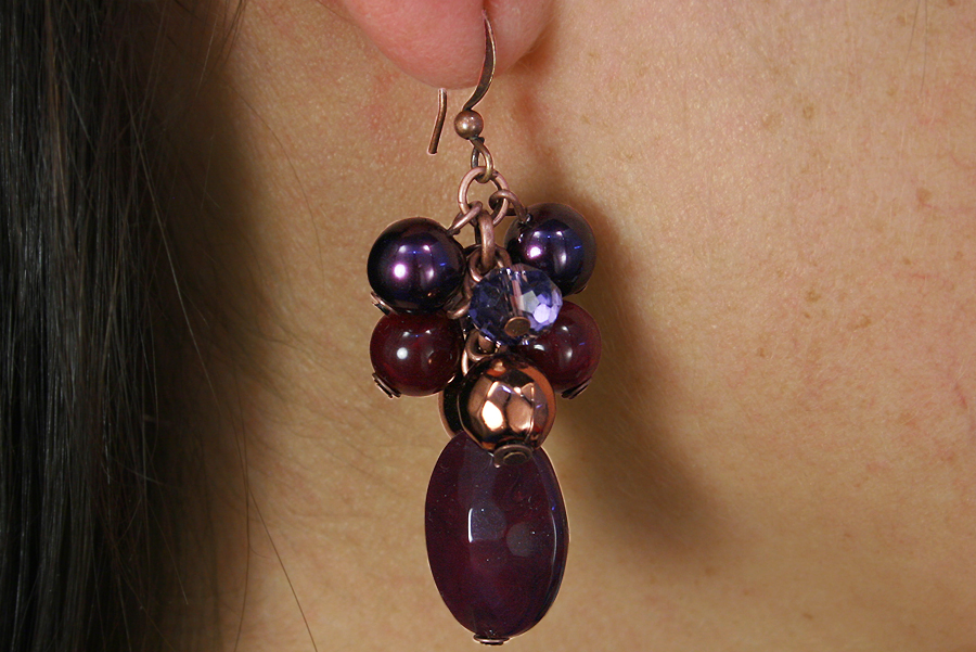 Lead & Nickel Free!! Deep Purple Sheer Ribbon Necklace Displays A Cluster Of Berry-Colored Beads And Copper Finish Ornaments. Necklace Includes Matching Fishhook Wire Earrings.