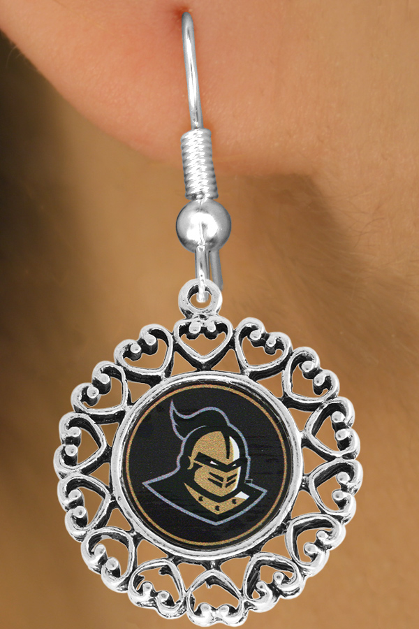 Licensed College Jewelry!! Lead & Nickel Free Earrings Suspend University Of Central Florida "Knights" Charms With Filigree Trim.