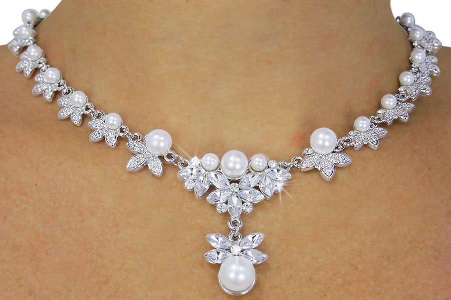 <BR>                      LEAD & NICKEL FREE!!<bR>W18080NE - GENUINE AUSTRIAN CRYSTAL<br>  & FAUX PEARL FLOWER DROP NECKLACE<Br>  & EARRING SET FROM $10.56 TO $19.50