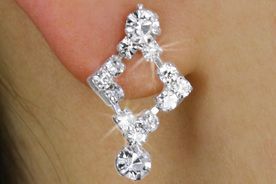 Polished Silver Tone Genuine Austrian Crystal Criss Cross Diamond Shaped Necklace Includes Matching Post Earrings.