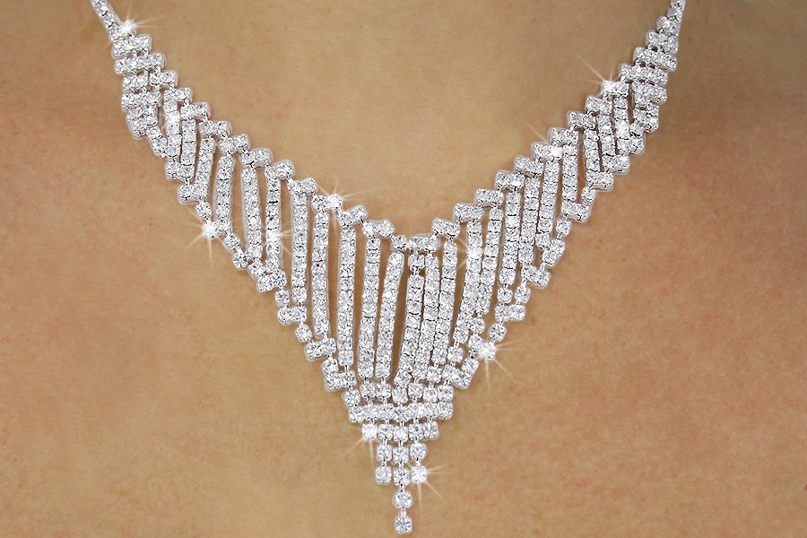 <BR>               LEAD & NICKEL FREE!!<bR>W18083NE - BEAUTIFUL VERTICAL <br>       STRAND AUSTRIAN CRYSTAL <Br>    CHEVRON NECKLACE & EARRING <Br>        SET FROM $16.25 TO $30.00