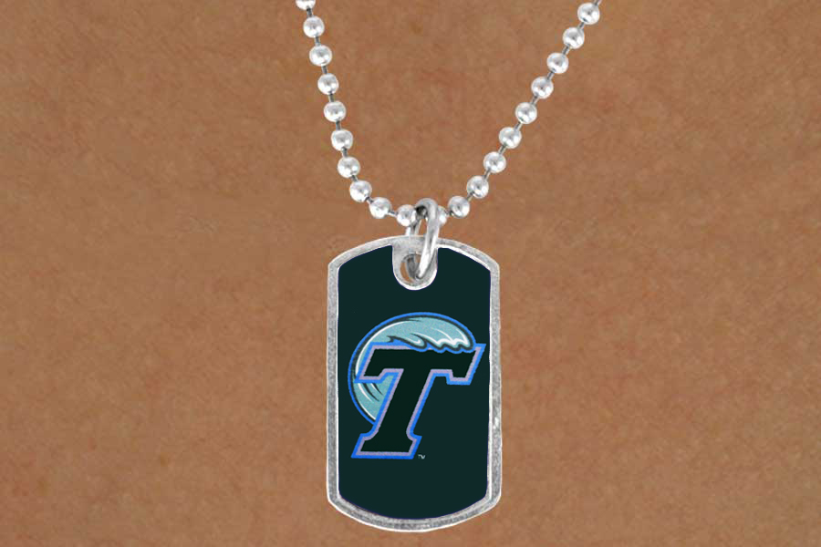 <Br>                   LEAD & NICKEL FREE!!<Br>             STERLING SILVER PLATED!!<bR>W19148N - LICENSED TULANE UNIVERSITY<Br>   "GREEN WAVE" LOGO DOG TAG<br>        NECKLACE FROM $3.35 TO $7.50