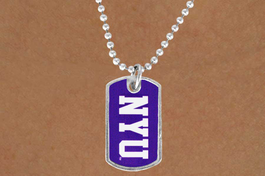 <Br>                   LEAD & NICKEL FREE!!<Br>             STERLING SILVER PLATED!!<bR>    W19166N - LICENSED NEW YORK <Br>   UNIVERSITY "NYU" LOGO DOG TAG<br>        NECKLACE FROM $3.35 TO $7.50