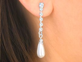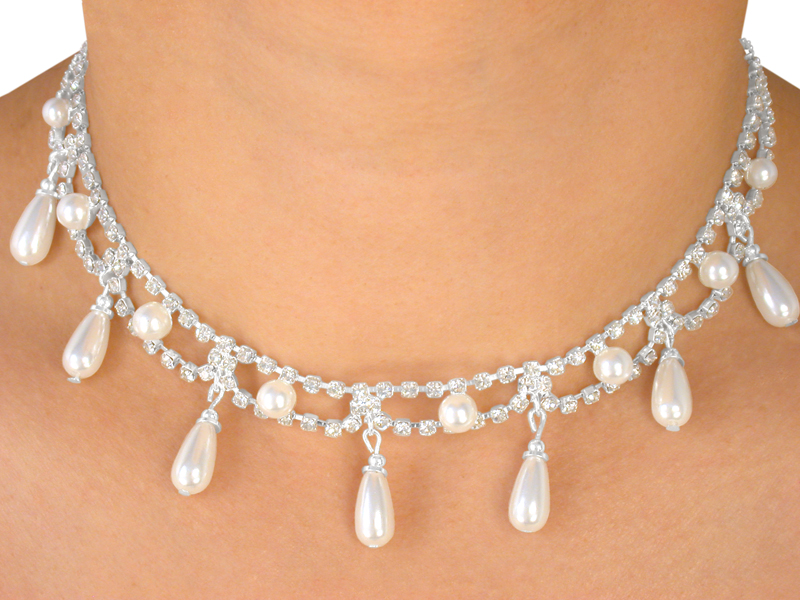 Breathtaking New! Silver Finish Lobster Clasp Necklace Set With Genuine Austrian Crystals And Accented By Synthetic Pearl Drops! Necklace Includes Matching Austrian Crystal Chain & Pearl Drop Earrings!