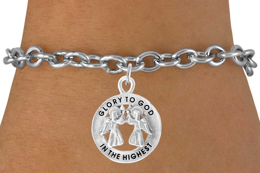 Lead & Nickel Free! Glory To God In The Highest Charm Comes On A Bracelet Of Your Choice: Lobster Clasp Chain, Toggle Chain, Brown Suede Leatherette, Or Black Suede Leatherette.