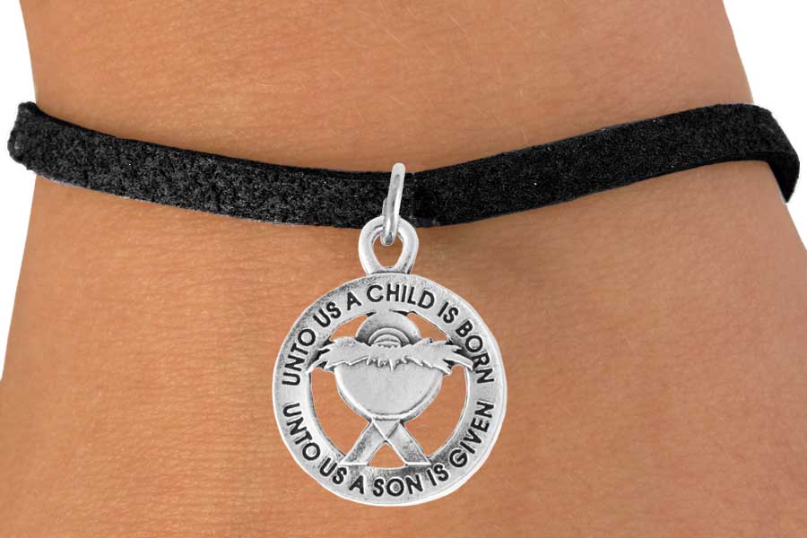 Lead & Nickel Free! Unto Us A Child Is Born…Unto Us A Son Is Given Charm Comes On A Bracelet Of Your Choice: Lobster Clasp Chain, Toggle Chain, Brown Suede Leatherette, Or Black Suede Leatherette.