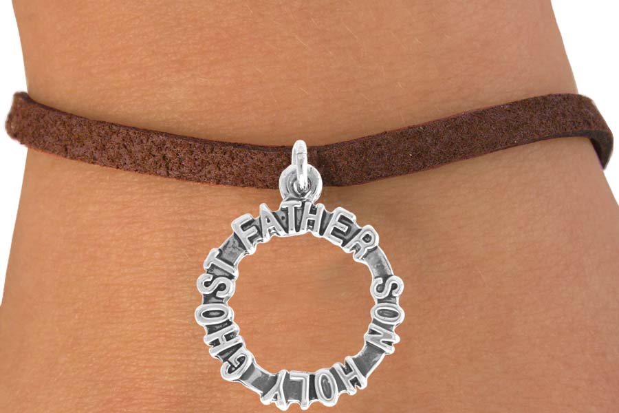 Lead & Nickel Free! Father Son Holy Ghost Ring Charm Comes On A Bracelet Of Your Choice: Lobster Clasp Chain, Toggle Chain, Brown Suede Leatherette, Or Black Suede Leatherette.