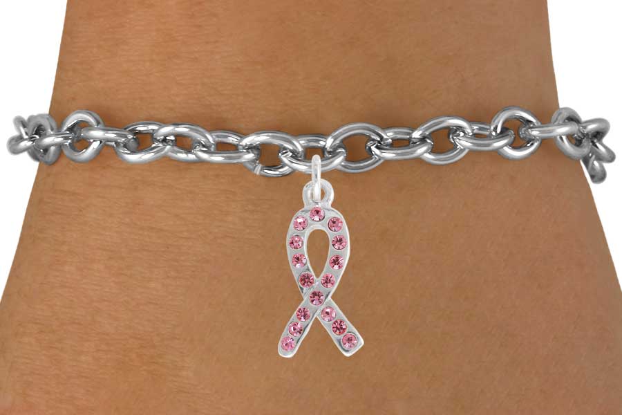 This Beautiful Pink Ribbon Awareness Bracelet Is The Perfect Gift To Honor A Friend, Loved One Or Yourself Who Has Overcome This Disease. You Or A Loved One Beat The Disease, Let The World Know By Wearing This Bracelet. Pink Austrian Crystal Awareness Ribbon Comes On A Bracelet Of Your Choice: Chain Or Toggle.
